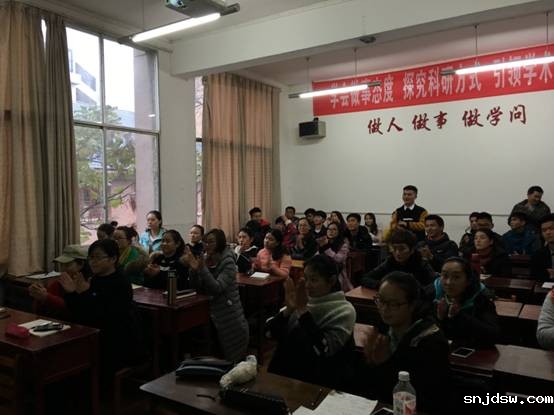 最后,现场师生向杨教授提问,有如“杨教授是如何将武家文化和自身造诣应用到教育子女问题上”等,他都真诚答复,无所保留。在连绵不断的掌声中,杨维教授结束了本次专题讲座。