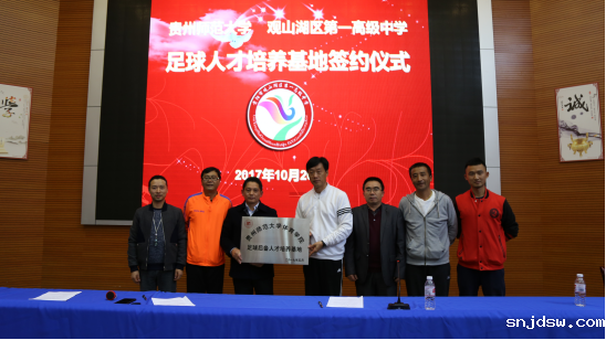 观山湖第一高级中学校长聂先登、校足球代表队主教练袁丁、教练员彭新建和王松等全程参与座谈交流和签约挂牌仪式。双方就当前校园足球发展态势、贵州省足球特色学校和中学足球队伍梯队建设、教练员队伍建设和储备、运动员培养路径和校园足球环境等共同关注的问题进行了广泛深入的交流,双方一致认为,通过足球后备人才基地平台建设,进一步拓展学院专业招生优质足球生源和提升学生运动员发展空间,并为贵州省校园足球的全面普及打下更坚实的基础,形成两校共赢的新局面。