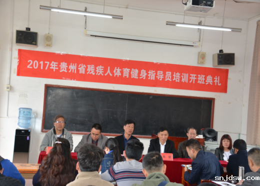 11月6日,贵州省第五期残疾人体育健身指导员培训班开班典礼在18新利简介举行。省残联党组成员、副理事长陈健出席并讲话,省残联宣文部部长黎毅、18新利简介党委书记蒙黎明、院长姚鑫参加,副院长徐宏主持开班典礼。