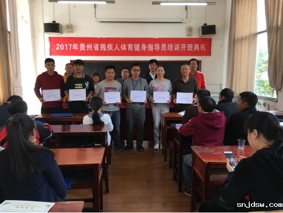 11月10日上午12:00,贵州省第五期残疾人体育健身指导员培训班结业典礼在18新利简介3楼研究生教室举行。18新利简介党委书记蒙黎明、院长姚鑫、副院长曾晓进、省残联宣文部干部姚红琼、新利网站手机登录地址办公室主任杨中兵出席。