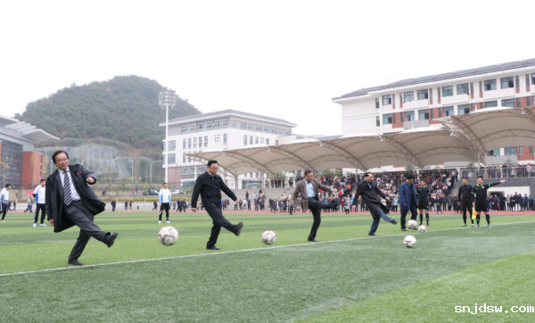 揭牌仪式结束后,与会领导、嘉宾共同为我校足球友谊赛开球。
