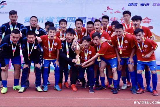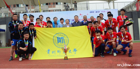 6月3日,由我校承办的贵州省大运会男子足球(甲组)赛事,结束了为期8个比赛日的全部比赛。在最后一天的决赛当中,贵州师范大学以2:1战胜贵州理工学院获得冠军,贵州理工学院、贵州财经大学、贵州民族大学分获二、三、四名。