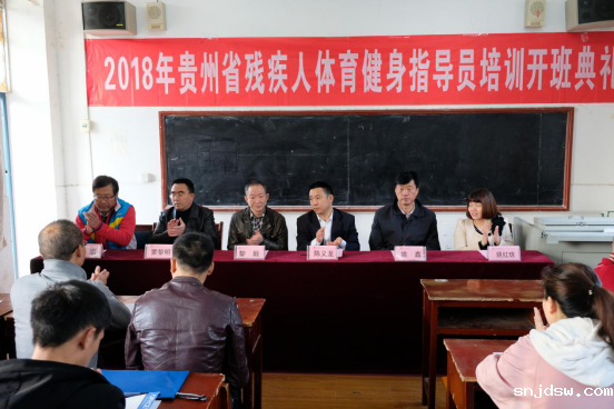 11月26日,贵州省第六届残疾人健身指导员培训开班典礼在18新利简介举行,省残联副理事长陈义龙出席并讲话,省残联宣文部部长黎毅 、省残联宣文部副主任姚红琼、18新利简介党委书记蒙黎明、新利网站手机登录地址院长姚鑫参加。新利网站手机登录地址副院长徐宏主持会议。