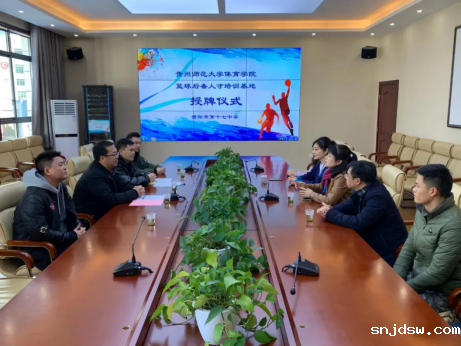 2021年1月13日,18新利简介篮球后备人才培训基地授牌仪式在贵阳十七中举行。18新利简介副院长杨中兵、办公室副主任欧强、男子篮球校队主教练赵斌,贵阳市第十七中学党总支书记、校长周燕、党总支副书记罗林、副校长刘宏霞等出席授牌仪式。