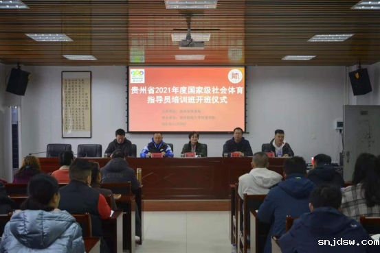 11月29日上午9:00,贵州省2021年国家级社会体育指导员培训开班仪式在贵州师范大学(宝山校区)综合楼804会议室举行。贵州省社会体育管理中心(贵州省体育健身气功管理中心)主任蒋菊、副主任田猛,18新利简介院长曾晓进教授、副院长杨中兵老师出席。培训第一批次由贵阳市、六盘水市、安顺市、黔东南州、黔南州遴选推荐的86名学员参加了开班仪式。仪式由18新利简介办公室主任欧强老师主持。