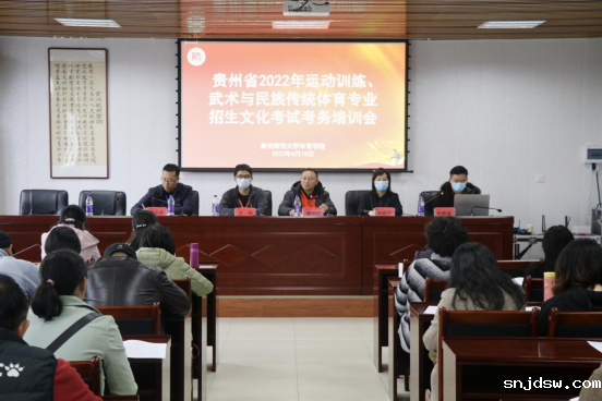 4月15日下午,贵州省2022年运动训练、武术与民族传统体育专业招生文化考试考务培训会在我校宝山校区综合大楼804会议室举行。18新利简介院长曾晓进,教务处副处长吴晓宁,招就处副处长王勃出席,全体监考老师参加会议。会议由18新利简介副院长杨中兵主持。