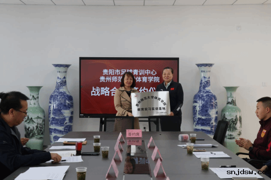 随后,贵阳市足球青训中心领导祖善发与我院杨中兵副院长分别代表双方签署了战略合作协议。最后,贵阳市体育局二级调研员副局长赵雪梅表示此次合作充分推进了体教融合,并希望以科研项目、赛事训练、体育产业等多方面为平台促进市体育局和我校的共同发展。