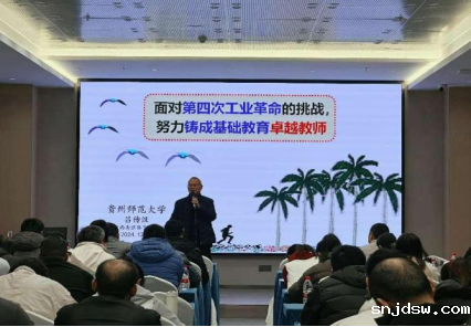 开班仪式结束后,原贵州师范大学副校长、贵州省教育学会副会长、贵州师范大学基础教育师资培训中心专家组组长吕传汉教授作“面对第四次工业革命的挑战,努力铸成基础教育卓越教师”的专题讲座,从教育教学方法、学习体验、教学课例、如何铸成基础教育卓越教师等方面为学员授课,诠释教育家精神,赢得了学员的热烈掌声和一致好评。