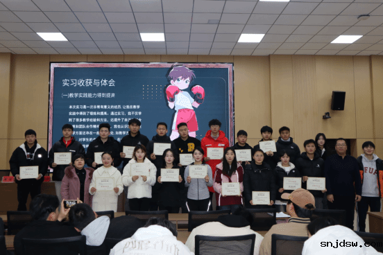 紧接着,各专业各实习小组进行了实习成果展示汇报。各实习单位的优秀实习生代表围绕实习单位的特点、特色,实习期间所从事的教学、训练和班级管理等工作分享了实习小组的经历和感受。同学们一致肯定了集中教育实习的重要性,认为通过实习能真正将理论知识和实践相结合,提高了自身专业知识和技能,学会了针对不同年龄段的沟通方式及教学设计。同时,也充分意识到成为一名合格的体育教师的要求,对自己今后的努力方向有了更加清晰的认识。