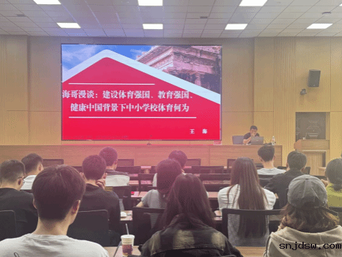 讲座开篇,王海老师以其深厚的理论功底和丰富的实践经验,全面解读了体育强国、教育强国、健康中国三大国家战略的深刻内涵。他从政策提出的时代背景谈起,梳理了发展脉络,分析了当前实施现状,为在场师生勾勒出一幅清晰的宏观政策图景。