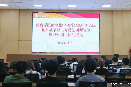 9月3日上午9时,中国人民抗日战争暨世界反法西斯战争胜利80周年纪念大会在北京天安门广场隆重举行。在学院的组织下,我院师生代表近两百人齐聚一楼学术报告厅,共同收看直播。