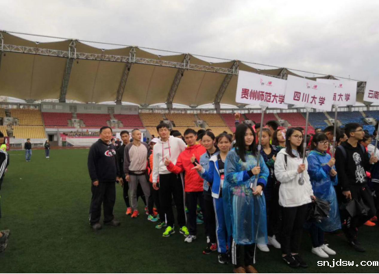 2018年3月31日,中国大学生校园路跑接力赛西南赛区决赛在成都西南交通大学隆重举办。本次西南赛区的比赛由来自西南交通大学、重庆师范大学、四川大学、重庆大学、西南政法大学、西南大学、云南师范大学、云南民族大学、云南大学、贵州师范大学、桂林理工大学、广西师范大学12所高校的菁英跑者组成,各队强者如云,实力不可小觑。我校田径队运动员们奋力奔跑,前四棒,各队之间一直没能拉开差距,直到第五棒,我校全国“跑游”项目冠军肖永丽接棒后,逐步拉开了距离,接下来的几棒,队员们巩固了优势,最终拿下西南赛区冠军,同时荣获总决赛入场券。