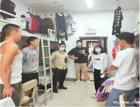 为积极配合疫情防控要求,落实学校疫情防控专题会议精神,筑牢校园安全防线,了解学生健康情况和思想动态,共同保障全体师生安全,9月4日,我院党委书记吕涛、副院长杨中兵带领全体辅导员共同走访学生宿舍,向同学们传达学校疫情防控政策要求,并叮嘱同学们要时刻关注疫情变化,做好必要防护;如有身体不适,一定要及时上报;积极配合学校疫情防控工作,主动进行三天两检,落实防控措施;注意宿舍卫生,勤通风、勤消毒。希望同学们在疫情封校期间保证身心健康,保持积极向上的状态,认真学习,充实地度过静默管理期间的校园生活。