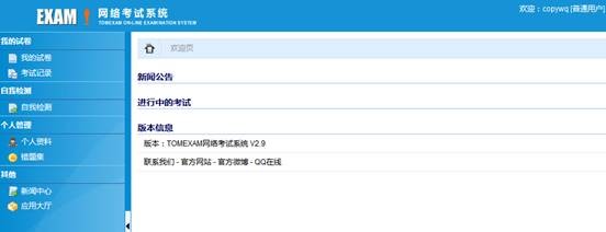 系统左边导航栏分为:我的试卷、自我检测、个人管理