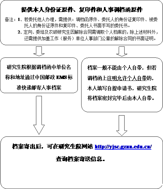 注:1、此流程主要针对毕业研究生个人办理调档事宜。