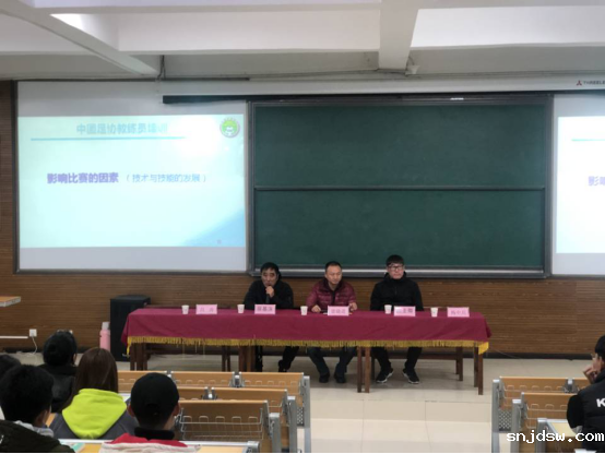 11月5日上午,足球学院在花溪校区GJ6201举行校园足球讲座,主讲人为延边大学教授、全国校园足球裁判委员会主任蔡基洙老师和前中国职业足球运动员、亚足球A级教练员曲圣卿老师。新利网站手机登录地址(足球学院)院长曾晓进、党委副书记吕涛、副院长杨中兵、专业教师曹波、辅导员江坤以及足球学院全体同学参加了讲座。