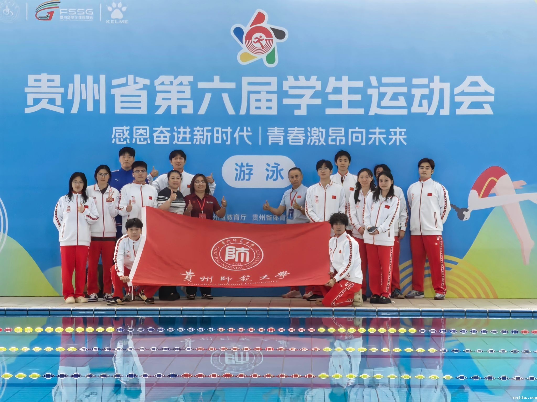 贵州省第六届学生运动会大学组共设有9个大项,我校选拔组建了甲乙组共17支代表队参赛,游泳队作为最早开赛的项目,以优异的成绩为我校征战本届运动会取得了开门红,期待我校代表队继续刻苦训练,勇于挑战,为学校夺得更多荣誉。